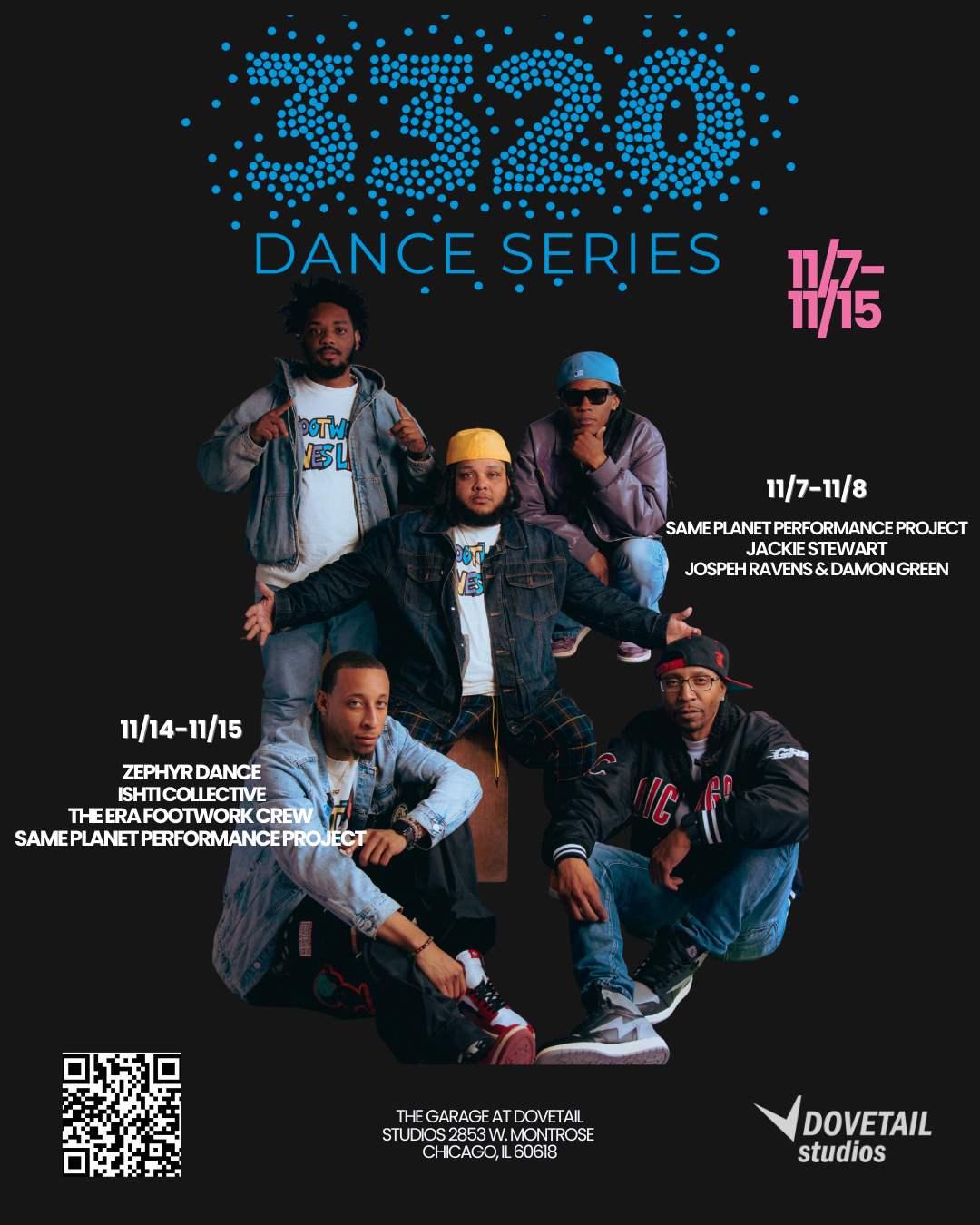 Produced by Joanna Read and Same Planet Performance Project, Dovetail Studios and Zephyr Dance , 3320 will feature original work and performances by a cross section of some of Chicago’s most prolific dancemakers including, Damon Green, Ishti Collective, the Era footwork Collective, Joseph Ravens, Same Planet Performance Project, Jackie Stewart and Zephyr Dance. 3320 is designed to showcase the choreographic depth and varied aesthetics of Chicago’s dance community highlighting experienced choreographers within the intimate setting of Dovetail Studio’s Garage Space.