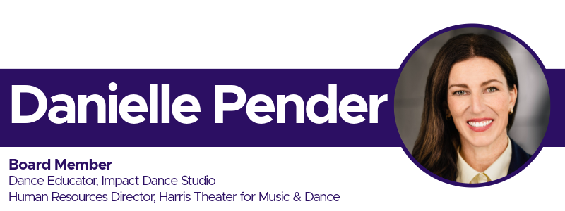 Danielle Pender (she/her) is a distinguished dance educator and human resources professional based in Chicago, seamlessly blending her passion for the arts with organizational leadership. At Impact Dance Studio, Danielle imparts her extensive knowledge to students across all age groups, fostering creativity, discipline, and a profound appreciation for dance. Her commitment to nurturing talent ensures that each student receives personalized guidance, cultivating both technical proficiency and artistic expression. In her capacity as the Human Resources Director at Harris Theater for Music and Dance, Danielle leverages her expertise to cultivate a supportive and inclusive workplace culture. Her efforts are pivotal in advancing the theater’s mission to connect audiences with artists, guided by core values of belonging, integrity, respect, collaboration, and resilience. Danielle’s dual roles exemplify her dedication to enriching Chicago’s performing arts community, as she continually strives to make the arts accessible and engaging for all.