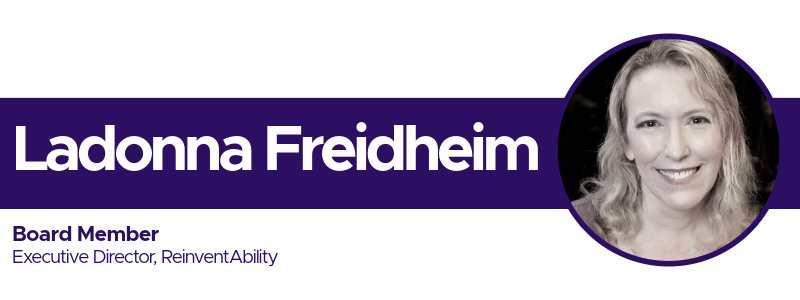 Ladonna Freidheim (she/her) is a wheelchair dancer, the founder of ReinventAbility, creator of DisFest, and serves on the Board of Directors of both MOMENTA Dance Company and See Chicago Dance. Ladonna’s early life revolved around ballet until a degenerative disability changed everything. With the aid of braces and a cane or crutches, she can navigate the world much of the time, but it is Ladonna’s wheelchair that has restored her dancer’s soul. Ladonna is honored to have received a 2023 Leadership in Dance Award, the Rhythm Within Award, nominations for 3Arts awards in dance and in education, and appointments to an NEA dance panel and the ArtsEd Leadership Committee for CPS.