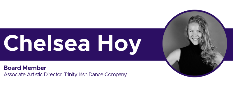 Chelsea Hoy (she/her) joined Trinity Irish Dance Company (TIDC) in 2014 and became Associate Artistic Director in 2018. A dynamic choreographer, performer, and organizational leader, she has helped shape TIDC’s vision and growth over the past decade. She recently premiered The Sash, her third co-choreographed work with Founding Artistic Director Mark Howard, following An Sorcas (2018) and Taking the Mick (2024).