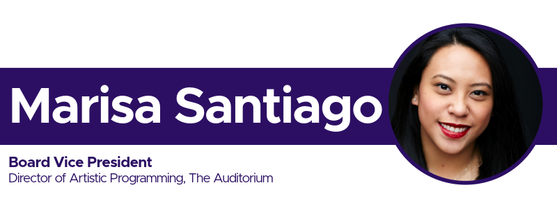 Marisa C. Santiago (she/her) is an arts administrator with over a decade of experience in the industry. As Producing Director of Artistic Programming at the Auditorium, she curates the presented dance season and produces signature works like Too Hot to Handel, a jazz gospel Messiah. She has worked with choreographers such as Alejandro Cerrudo, Robyn Mineko Williams, and Andrea Miller, and toured with companies including Alonzo King LINES Ballet, Jessica Lang Dance, and Hubbard Street Dance Chicago. Beyond the arts, Santiago has produced large-scale events for global brands like Airbnb, La Liga, and Relevent Sports Group. Santiago has also served as a Dance Art Works Grant panelist for the National Endowment for the Arts. A graduate of Indiana University – Bloomington, she is passionate about building the arts community and mentorship for emerging arts professionals. She lives in Elmwood Park, IL, with her husband, Matt, and their two children, Milo and Amelia.