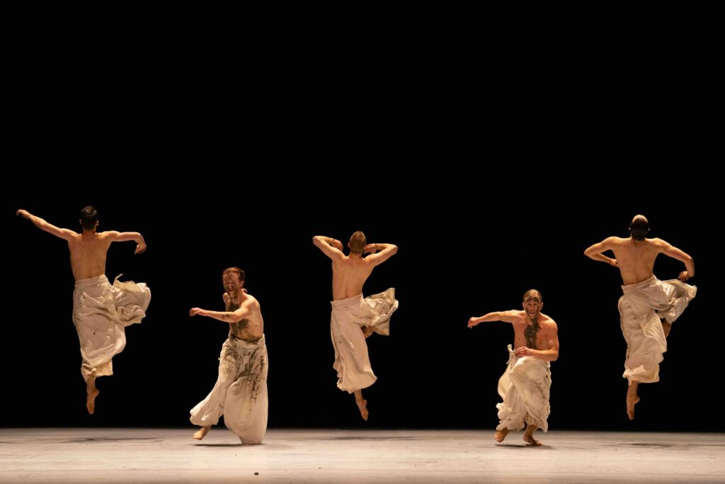 In a swirl and spiral, two become one as partners take each other’s weight. Equally gentle sensuality and rough manipulation, the two roll with such curves as if devoid of bones. Sensuality turns dark as one dancer grabs the other by the face and violently, repeatedly jams their head into the floor. This is not what the lone Hammans signed up for, and in a poignant turn, he breaks from the pack, washing himself clean of the mud warpaint.