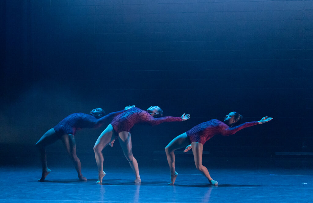 Closing the program, “Synapse” (2017) by Pupillo returns intensity with an experimental edge. The piece explores the interplay between movement and light, using electric blue light bars to cover, shift, and respond to the dancers. At times, the lighting appears to chase the performers across the stage; at others, it confines them, forcing a negotiation between body and environment.
