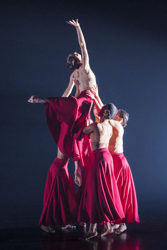 The program opens with Pupillo’s homage to the women in “Rise,” which premiered earlier this year. “It’s really about empowerment,” he says, “and in tribute to the women who trained me over the years and the dynamic women company members of Visceral throughout.” With Maggie Jarecki’s swirling red skirt costume design and lighting by Ely Kleinsmith, Pupillo says the quintet “reflects on how women constantly lift each other up.”